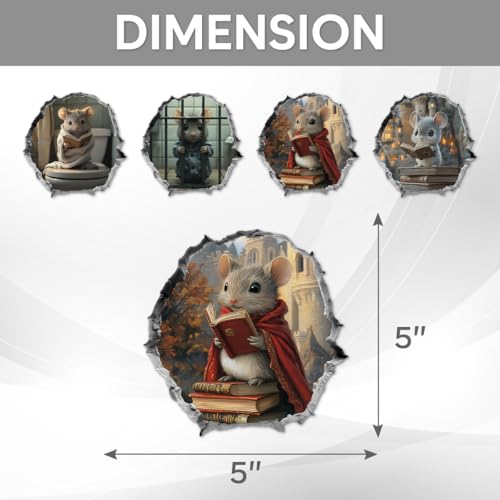 Pack 4 Pcs 3D Mouse Hole Wall Sticker for Girls Boys Toddler Kids Room Bedroom Classroom Car Window Funny Cute Stickers Waterproof Removable Reusable Vinyl Decals Home Accessories