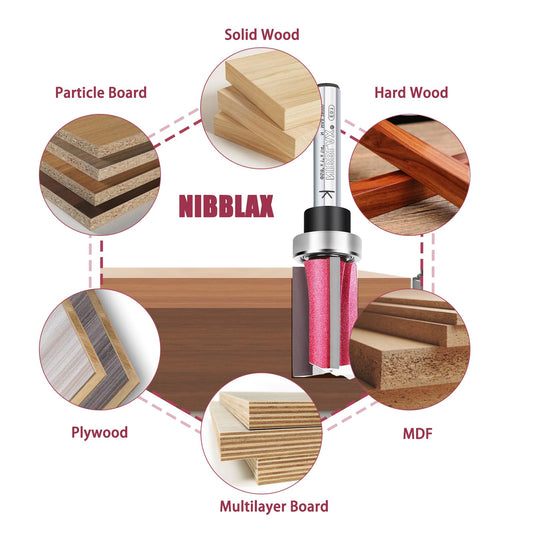NIBBLAX Top Bearing Flush Trim Bit - 2-Flute Router Cutter 1/4 Inch Shank, 3/16" Cut Diameter & 1/4" Cut Length, Flush Trim Cut Router Bit for Woodworking