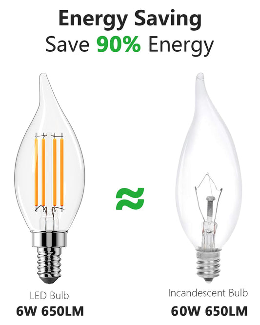 CYLYT E12 Chandelier Bulb 60 watt Equivalent, Dimmable LED Candelabra Light Bulbs 6W, 2700K Warm White 650 Lumen Lightbulbs, CA11, UL Listed, Pack of 6Regular price $25.95 USDRegular priceUnit price / per$51.99 USDSale price $25.95 USDSale