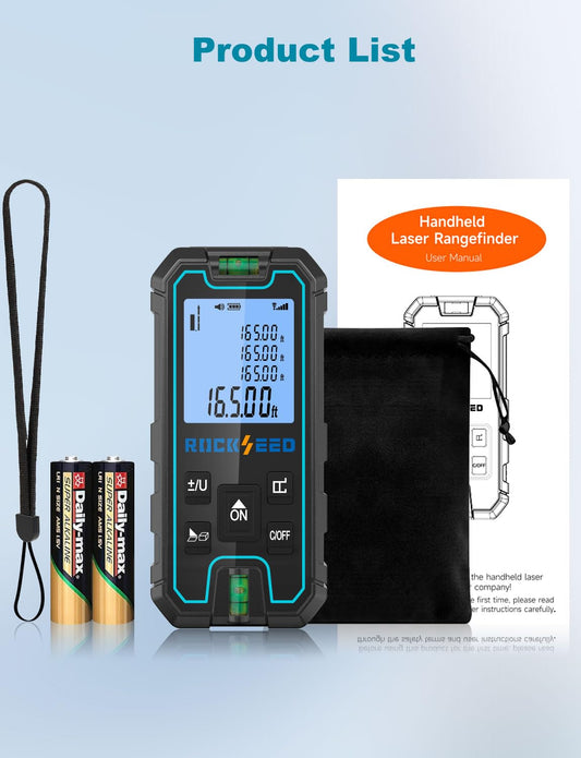 Laser Measure 165 Feet, RockSeed Portable Laser Distance Meter, Digital Distance Measurement with 2 Bubble Levels, Laser Distance Measure with 5 Units Conversion