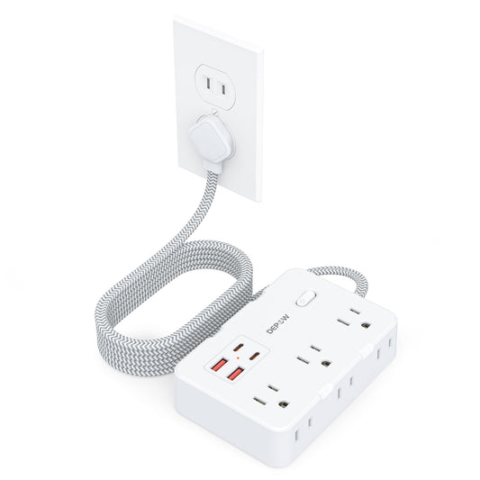 DEPOW 2 Prong to 3 Prong Adapter Power Strip - 6 Outlets & 4 USB Ports (2 USB-C), 1050J Two Prong Surge Protector, 5FT Braided Extension Cord, Wall Mount - Ideal for Old Houses Non-Grounded Outlets