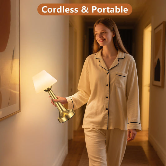 Outdoor Cordless Table Lamp,IP65 Waterproof Shower Lamp, 16 Hrs Rechargeable Gold Small Lamp,3 Colors Dimmable Nightstand Lamp, Battery Operated Night Light Lamp for Bathroom Patio Restaurant Bar