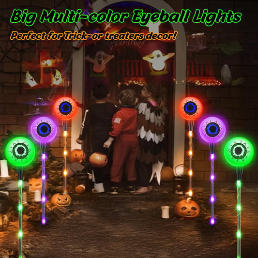 Set of 6 Halloween Decorations Outdoor Solar Eyeball Lights, 8 Modes Orange Purple and Green Scary Eyeballs Light, Waterproof Halloween Pathway Lights for Yard Garden Lawn Party Decor, Gifts