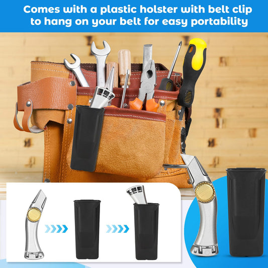 lizenoz 2PCS Silver Fixed Blade Roofing Knife Utility Knife with 3 functions for 6 blades Box Cutter with Holster Belt Clip Roofing Tools for Carpet, Outdoor Indoor Construction Marking