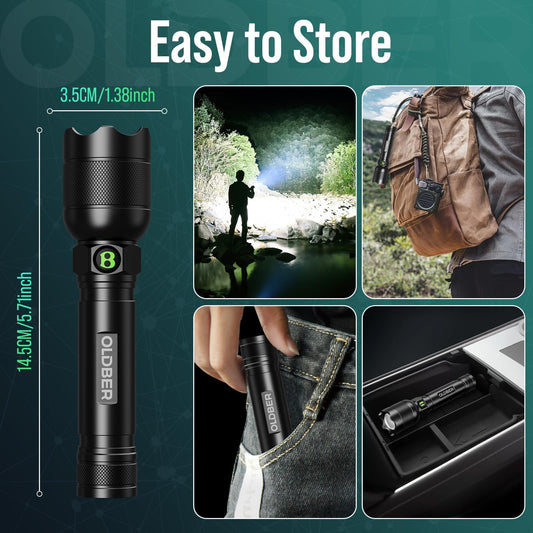 OLDBER Rechargeable LED Flashlights High Lumens, 2 Pack 5 Modes Small Bright Handheld Flash Light, Zoomable, Powerful, Waterproof for Camping, Home Emergency
