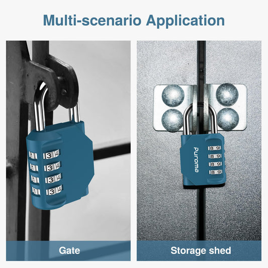 Puroma 4 Pack Combination Lock Multicolor for Locker 4 Digit Outdoor Waterproof Padlock for School, Gym, Sports, Fence, Toolbox, Gate, Case, Outdoor, Hasp Storage