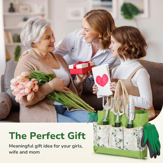 GreatBuddy Garden Tool Set for Women, 9 Piece Heavy Duty Rust-Proof Gardening Tool Set with Ergonomic Handles & Durable Organizer Handbag, Ideal Gardening Gifts for Mothers, Gardener, Beginners