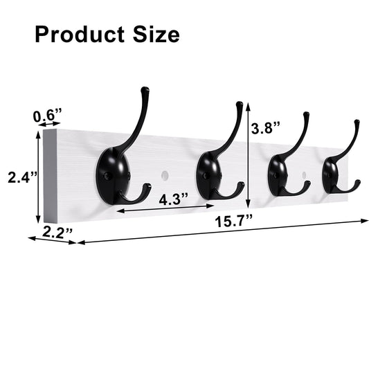 VERTORGAN Coat Hooks Wall Mount,Wooden Wall Hat Rack with 4 Hooks for Hanging Coat,Bag,Towel(White)