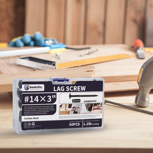 Lag Screws 3 Inch, 50PCS Heavy Duty Construction Screw, Structural Wood Screw #14 x 3, Rust Resistant, Washer Head, Black Coated Exterior Wood/Lag Screws Hex Socket Included