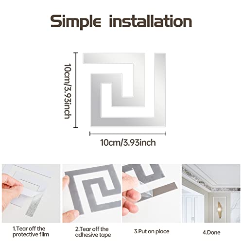 27Pcs Mirror Border Stickers Wall Decor Stickers Removable Peel and Stick Backsplash for Kitchen Room Decals Aesthetic Ceiling Decorations for Bedroom Bathroom Living Room Background Decors