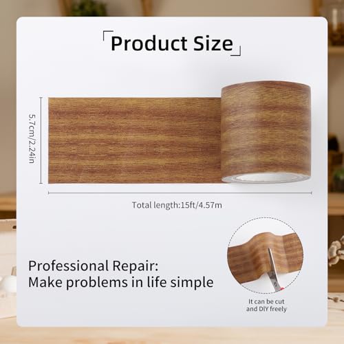 Wood Grain Repair Tape, 2.2 Inch x 15ft Self Adhesive Wood Colored Tape for Tables, Wood Colored Trim Wood Effect Duct Tape for Doors, Windows, Floors, Handicraft DIY