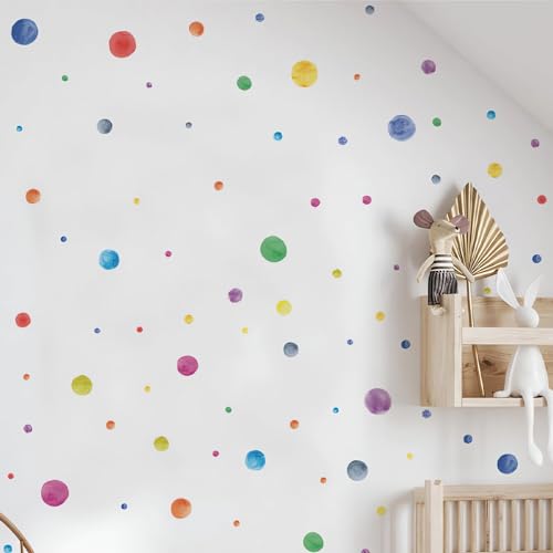 6 Sheets 123 Pcs Colorful Polka Dot Wall Stickers,sacinora Circle Rainbow Art DIY Wall Decals Removable Vinyl for Kids Baby Nursery Closet Refrigerator Children's Room Bedroom Home Decorations