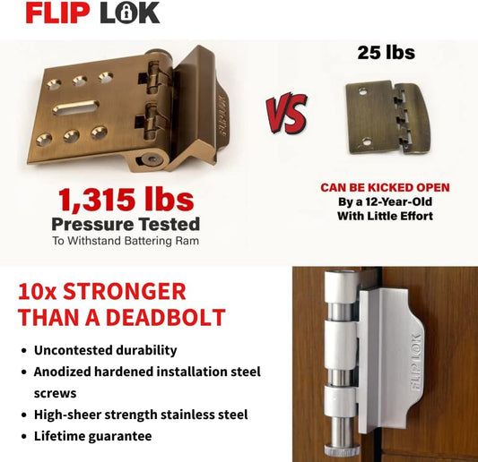 High Security FlipLok Keyless Door Lock - 10X Stronger Than Deadbolt, Black