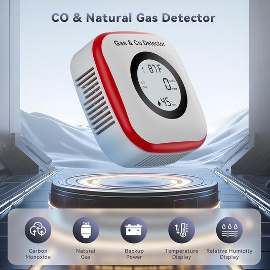 Carbon Monoxide & Gas Leak Detector with Battery Backup, Plug-In & Humidity Sensor