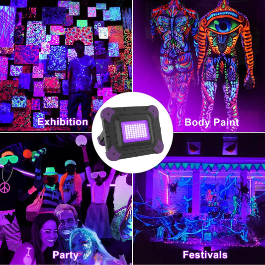 Rechargeable Waterproof LED Black Light - Cordless UV Flood Light for Parties, Body Paint & Night Fishing
