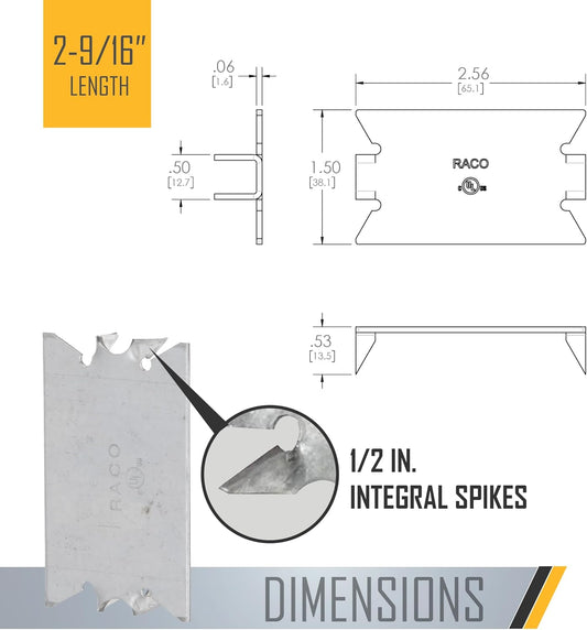 RACO 2710 Cable Protector Plate for Wood Studs – 2-9/16” Long, 200 Pack