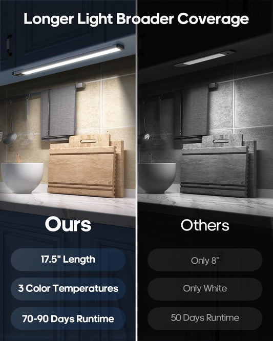 Rechargeable 17.5-Inch Motion Sensor Under Cabinet Lighting - Wireless LED Lights for Kitchen & Closet (4 Pack)