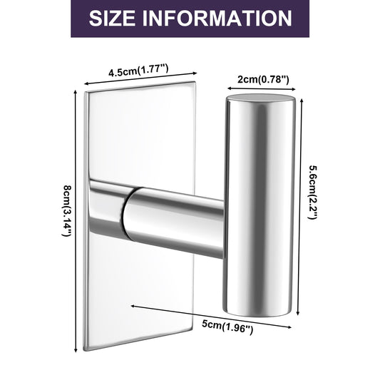 VAEHOLD Wall Towel Hooks, Heavy Duty Sticky Holder Waterproof Towel Hooks for Hanging Coat, Clothes, Closet Hook Wall Mount for Kitchen (Chrome, 2 Pack)