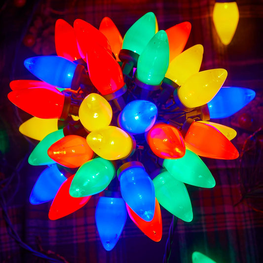 50ft C9 Vintage Christmas String Lights - 50 Colorful Waterproof Bulbs for Outdoor Holiday Decor, Connectable for Roofline & Patio