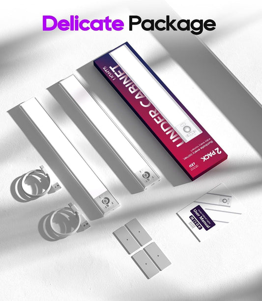 2 Pack Under Cabinet Lighting, 3 Color Temperature Motion Sensor Light Indoor, 2200mAh Rechargeable Closet Lights Motion Sensored, Adjustable Brightness, Under Counter Lights for Kitchen