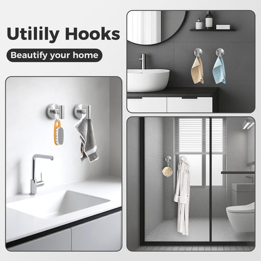 pickpiff Wall Hooks for Coat and Towel: 13LB Adhesive Door Hanger Stick on, Brushed Nickel