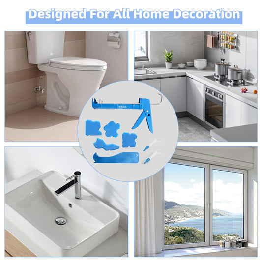 Caulk Gun Kit Smooths No-drip Silicone Caulking Gun and Caulking Tools, Sealant Tools Grout Scraper For Kitchen Bathroom Sink Joint,With Gift Box Works 10OZ Tubes blue