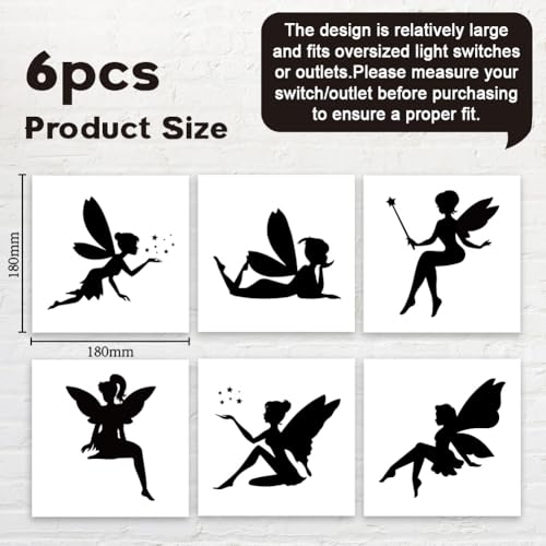 AHANDMAKER 6 Typess Fairy Silhouette Creative Switch Stickers, Fairy Wall Sticker Fairy Light Switch Decals Fairy Decor Wall Sticker for Light Switch, Outlets, Ledge, Vehicle or Home Decor