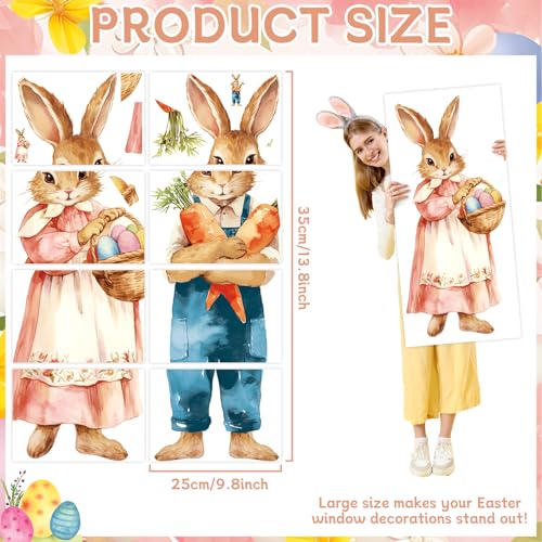 CHUNNIN 2Pcs Extra Large Easter Bunny Window Clings Spring Easter Window Decorations Vintage Easter Window Stickers Farmhouse Rustic Rabbit Carrots Decor for Glass Home Holiday Easter Party Supplies