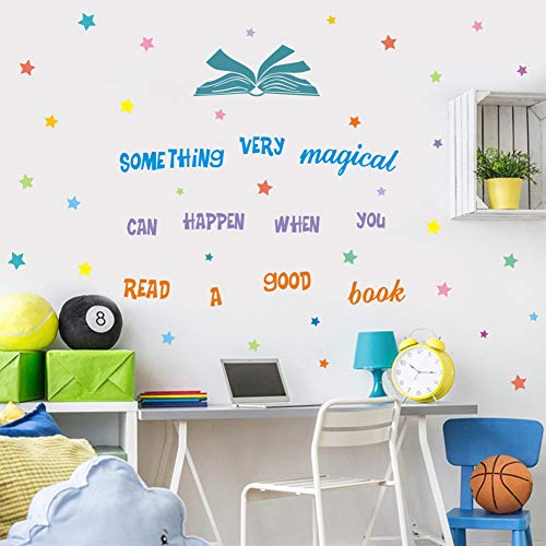 IARTTOP Something Very Magical Can Happen When You Read A Book Wall Decal, Colorful Stars Inspirational Quote Sticker for Classroom Kids Room Library Decor