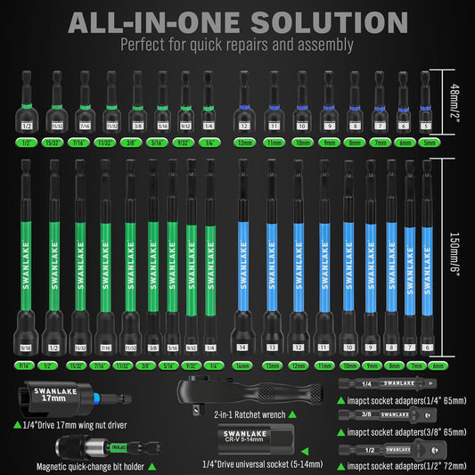 74-Piece Magnetic Nut Driver Set for Impact Drill - Metric & SAE, Universal Socket & Quick-Change Bit Extension