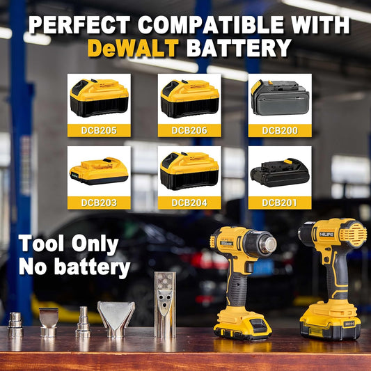 DeWALT Cordless Heat Gun - 20V Lithium Hot Air Tool with 5 Nozzle Attachments, 2 Temp Settings up to 1022°F for Shrink Wrapping & Tube Bending