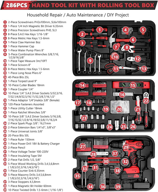 149-Piece KingTool Home Repair Tool Kit - Complete Mechanic Set with Toolbox for Home, Office & College