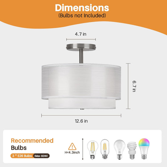 Modern 3-Light Flush Mount Ceiling Light Fixture - 12.6" Farmhouse Drum Lamp with Linen Shade for Bedroom & Hallway