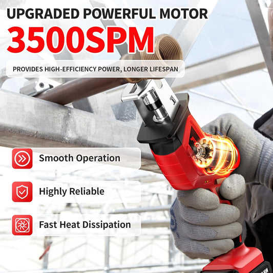 Cordless Reciprocating Saw 0-3500 SPM with 2 Batteries & 4 Blades - Tool-Free, Variable Speed for Wood, Metal, Plastic