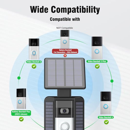 QIBOX Solar Charger for Ring Video Doorbell (2020) - Waterproof 2.9W Micro USB Panel