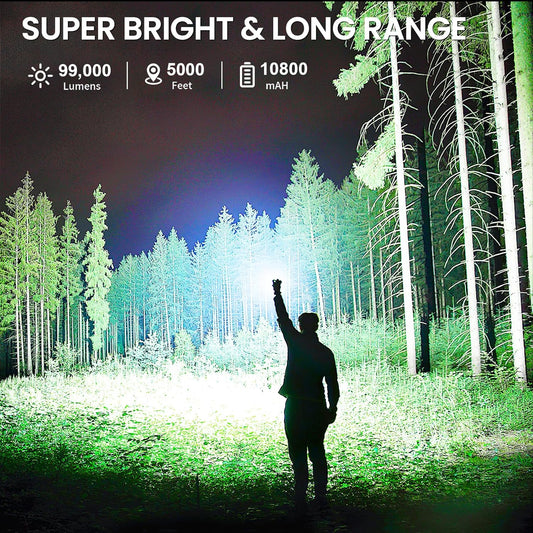 99,000 Lumen Rechargeable LED Spotlight with Tripod | 6 Modes & 30H Runtime for Outdoor Adventures