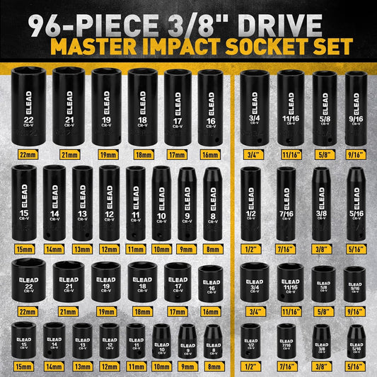 96-Piece ELEAD Impact Socket Set - Deep & Shallow Metric/Standard with Ratchet, Adapters & Extensions