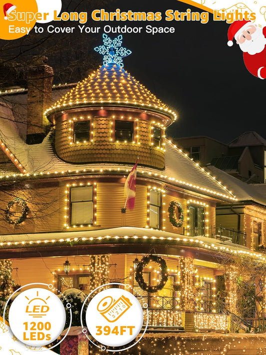 1200 LED Waterproof Christmas String Lights - 394 FT Outdoor Fairy Lights with 8 Modes for Holiday Decor (Multicolor)