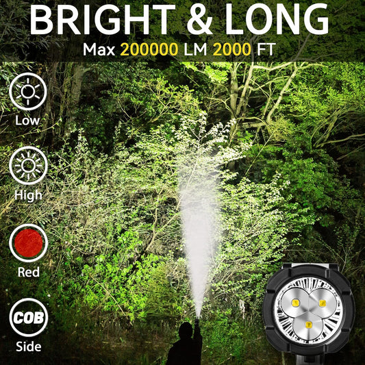 200000 Lumen Rechargeable Spotlight Flashlight - Super Bright LED Handheld Light for Hunting, Boating & Camping
