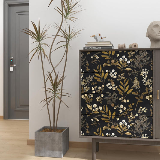 Peel and Stick Vintage Black Floral Wallpaper - 17.5'' x 393'' Self-Adhesive Boho Decor
