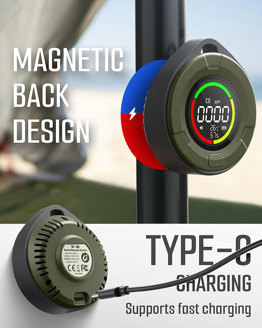 Portable Carbon Monoxide Detector DS-100 - 3-in-1 CO Monitor with Magnetic Back & 140H Standby for Travel, Camping, Hotel, Car & RV