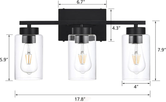 Modern 3-Light Bathroom Vanity Light in Brushed Gold with Clear Glass Shades