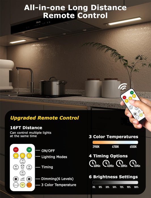 12" Wireless Ultra-Thin Under Cabinet Lighting - Rechargeable Motion Sensor Kitchen Lights, 3 Color Temps, Magnetic Aluminum Alloy (4 Pack, Silver)