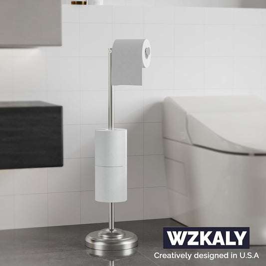 Brushed Nickel Free Standing Toilet Paper Holder with Pivoting Design & Weighted Base