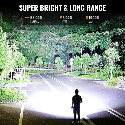 99000 Lumens Rechargeable Spotlight with Tripod - Super Bright LED Flashlight for Hunting & Outdoor Use