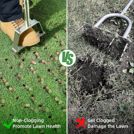 Core Aerator Lawn Tool - Manual Push Aerator with 3 Replaceable Tines for Healthy Grass