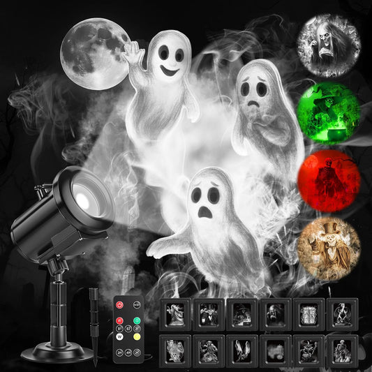 12-in-1 Halloween Projector Light - 3D Scary Ghost & Pumpkin Decorations for Outdoor & Window