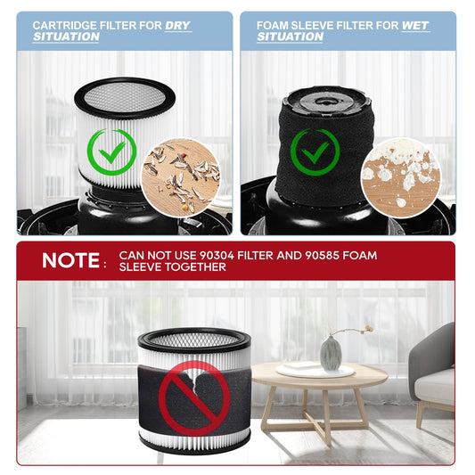 Filter Replacement 90304, 90585 Foam Sleeve Fit for shopvac 90304, 90350, 90333, 90585, 903-04-00, 9030400, 5 Gallon Up Wet Dry Vacuum Cleaners, 9 Pack