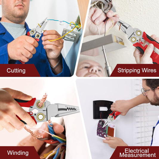 GADO Pro 8-in-1 Wire Crimper Stripper with Voltage Detector & Dual Alarms - Heavy Duty 12-250V AC/DC Tester for Hot/Neutral Wires - Electrician, HVAC, Car Repair Tool (Red)