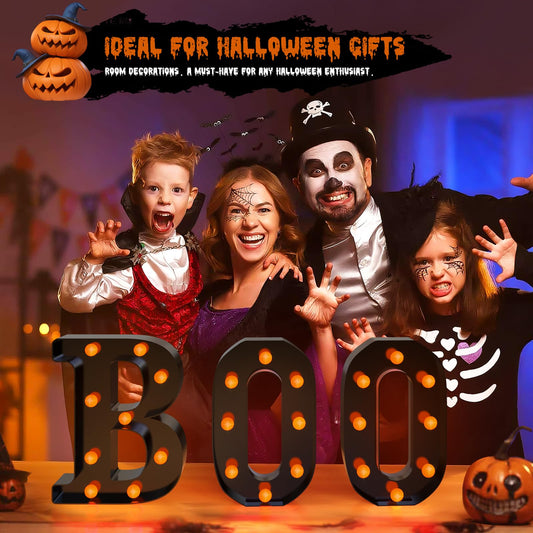 Halloween Decor,3 LED Light Up Marquee Letters Boo Sign,Cute Fall Halloween Decorations for Party,Tabletop,Mantel,Kitchen,Bathroom,Bedroom,Desk,Window,Porch,Office,Wall,Fireplace,Home,Indoor,Outdoor